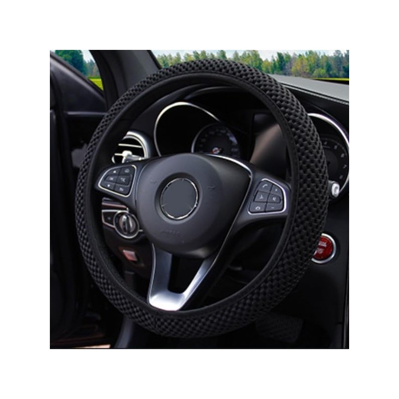 Lenkradabdeckung für Auto, Universal Auto Lenkradhülle Schwarz, Atmungsaktive Lenkradbezug Antirutsch, Geeignet für Lenkrad Außendurchmesser 36 bis 39 cm, Verfügbar in Allen Jahreszeiten