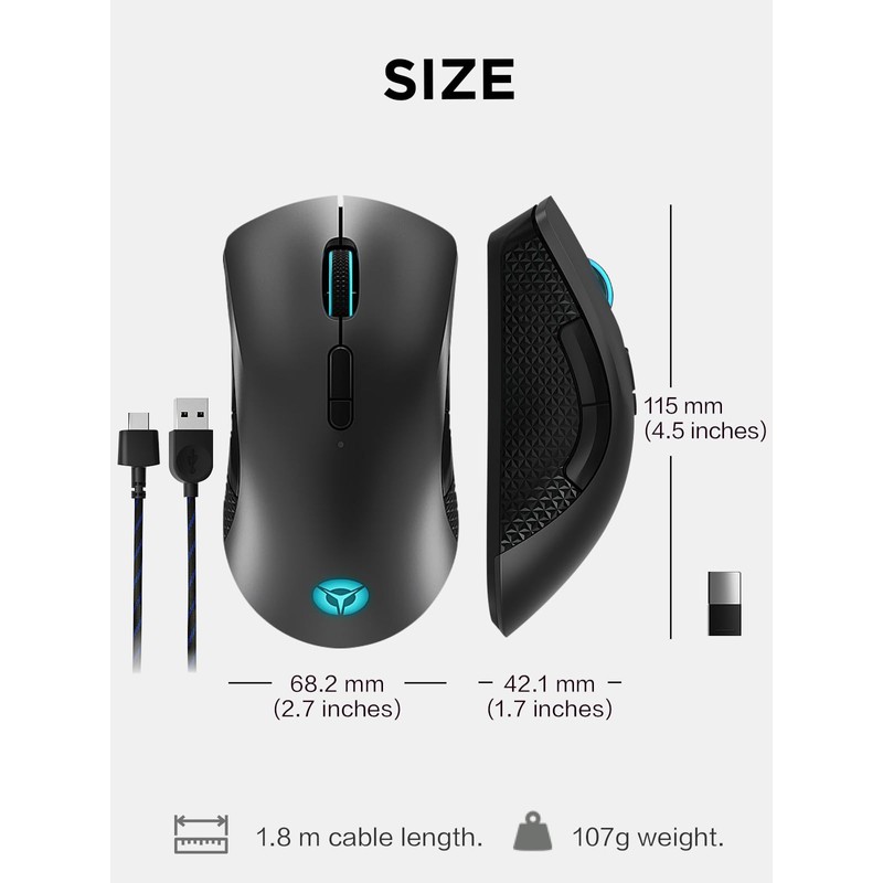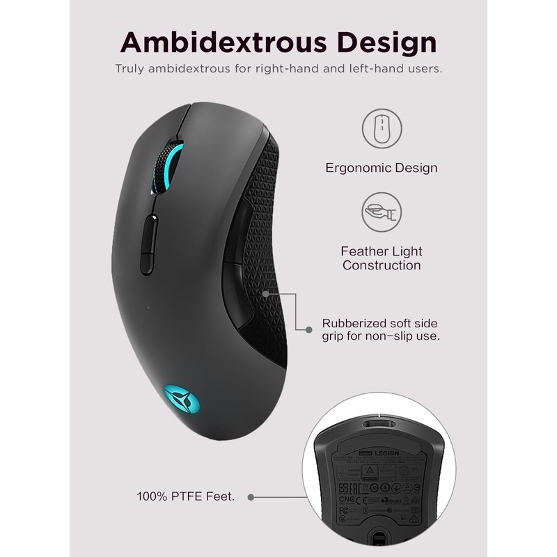 - Botones y luces programables (16,8 millones de RGB con Legion Accesorio Central) Sensor óptico nativo de 16.000 DPI Pixart 3335