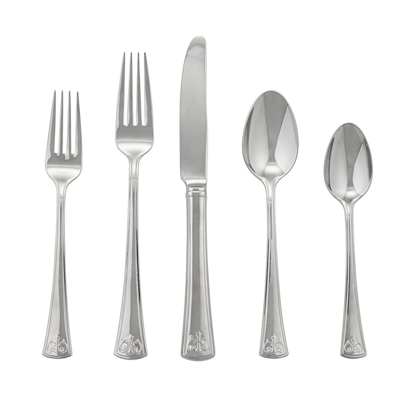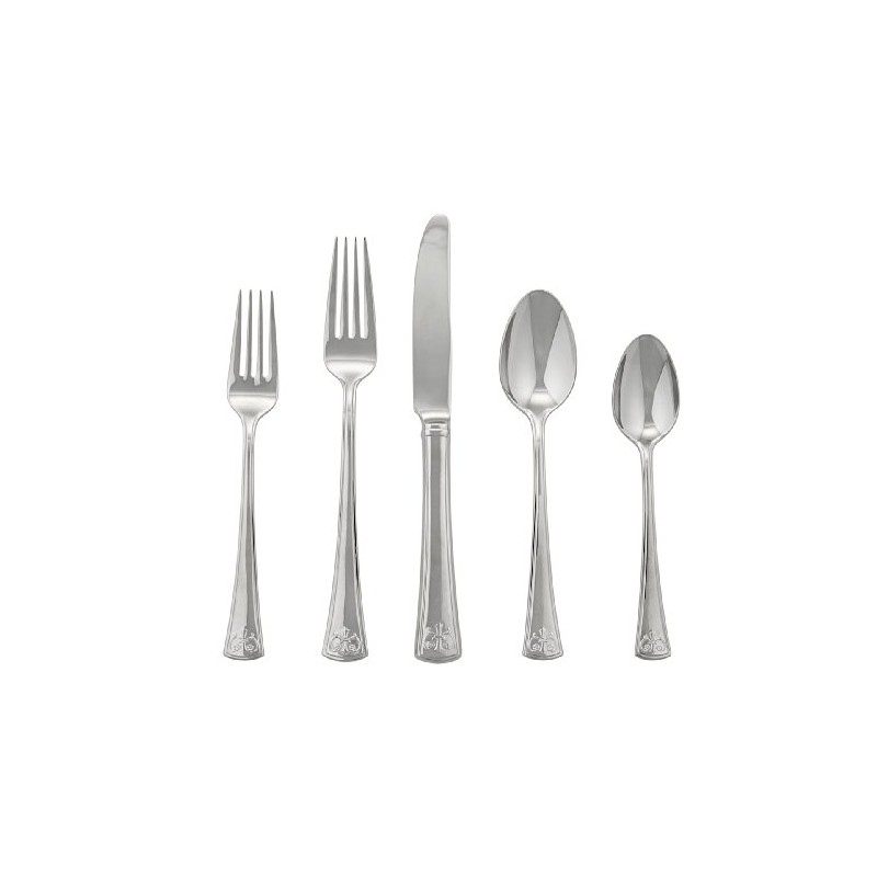 • Stainless steel place fork, salad fork, place knife, place spoon, and teaspoon