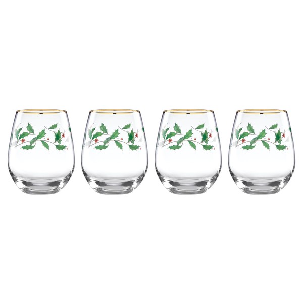 Lenox 888202 Holiday 4-Piece Stemless Wine Glasses, Christmas Drinkware Set, Hosting