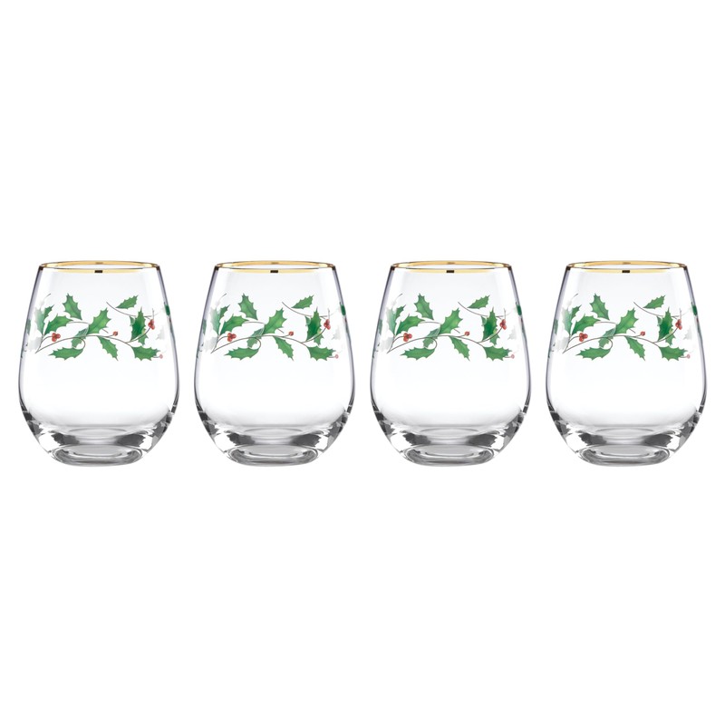 Designed in our signature holly leaf pattern, this 4-piece stemless wine glass set is perfect for serving up rich wine or festive cocktails for your next holiday party.At Lenox, we strive to make the daily moments in your life a bit more special. Inspired by heritage and designed for now, we bring a rich history of craftsmanship to modern day life. We’ve been a part of homes for over 130 years. Each time you buy Lenox, you are buying a versatile and timeless piece crafted with our century-long commitment to quality, artistry and beauty. Whether you’re gathering the family for dinner, grabbing a midnight snack for yourself in front of the TV or having friends over, Lenox is for real moments that last on products that are meant for living.