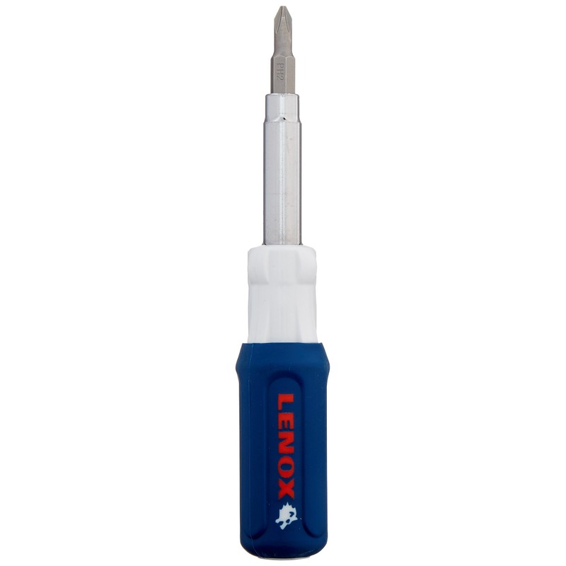 The Lenox Tools 23932 9-in-1 Mullet-tool Screw Driver is a versatile and comfortable driver that will allow you to work with a variety of fasteners. The 6-in-1 Screw Driver features a slip resistant, ergonomic grip that MAX the amount of torque you can use. The tool has a number 1 Phillips bit, number 2 Phillips but, a 3/16 inch slot bit, a 1/4 inch slot bit, number 2 Square drive, number 3 Square Drive, a 1/4 inch Nut Driver, a 5/16 inch Nut Driver and a 3/8 inch Nut Driver. The walls on the nut drivers are 25percentage thicker than traditional nut drivers which reduces stripping and provides a longer life. This tool is ideal for anyone who deals with a variety of different fasteners on a routine basis, like electricians and maintenance workers.