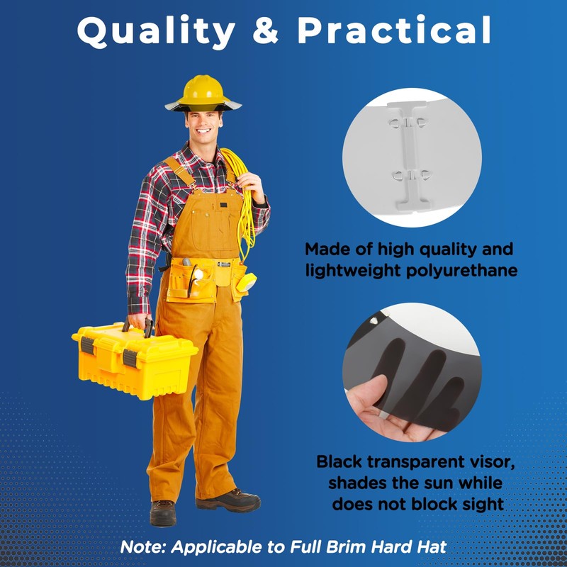 - Premium & Reusable: The hardhat sun shade is made of high-quality and lightweight polyurethane with translucent black visor. No additional burden on your head. It is easy to be cleaned with mild soap water which makes it durable and reusable. Please remove the protective film of the black visor before use.