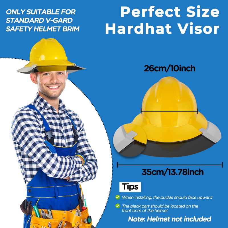 - Hard Hat Sun Shade: Extend the hard hat brim to provide shade to reduce the damage of sun exposure and heat to your face, eyes and ears which is safer and more comfortable.The hard hat visor is great for men or women working on construction site or working outside. 3 sets per pack with 3 extra clips is enough to meet your daily use and replacement.TIPS: THIS PRODUCT IS ONLY SUITABLE FOR STANDARD V-GARD SAFETY HELMET BRIM.