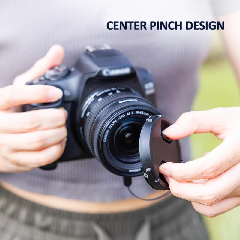 - Convenient Center-Pinch Design: Featuring a user-friendly center-pinch design, this lens cap allows for easy attachment and removal, even when a lens hood is in place. The ergonomic design makes it quick and hassle-free to use, so you can focus on capturing the perfect shot without worrying about fumbling with your gear.