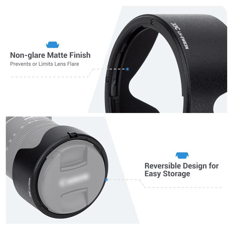 - The lens shade also provides additional protection to the lens from accidental impacts, bumps, or scratching.