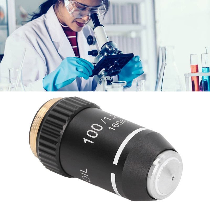 Lente de Objetivo de Microscopio 100X, Interfaz Cromada de Latón de Repuesto, 20,2mm para Microscopios Compuestos Lente microscopio Accesorios de microscopio Objetivo 100x microscopio