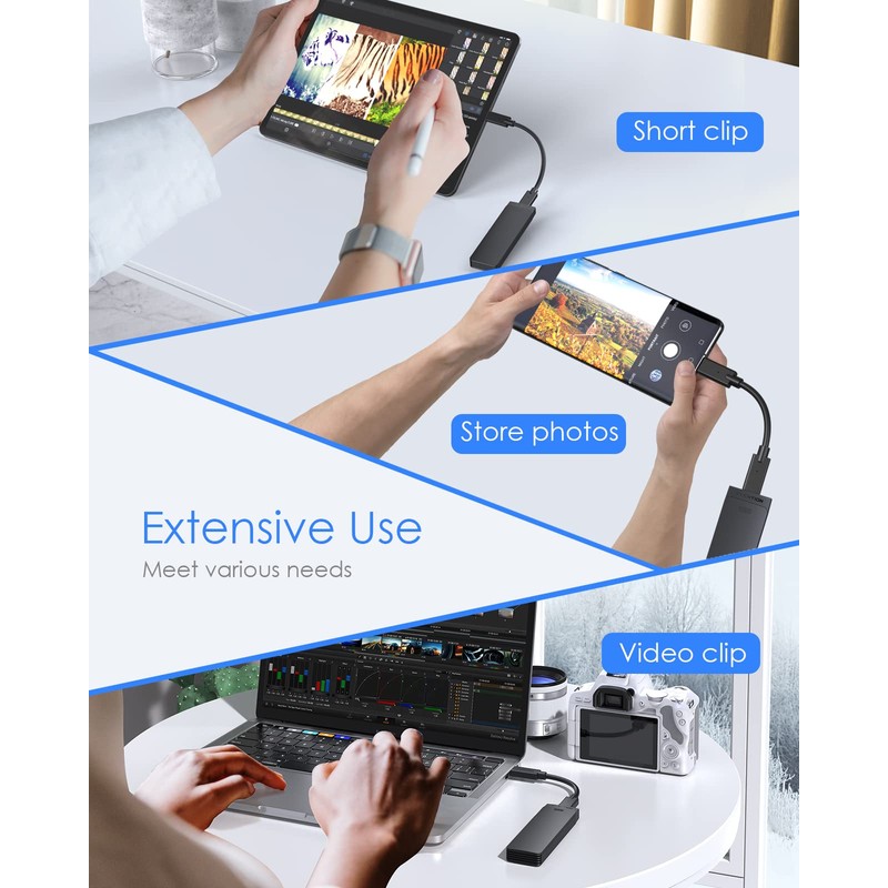 - Universal Compatibility:The C9b supports two different NVMe (PCIe) memory slots up to 2TB capacity M key and B&M key; and supports four different card size 2230/ 2242/ 2260/ 2280. The box includes one USB-C to USB-C cable