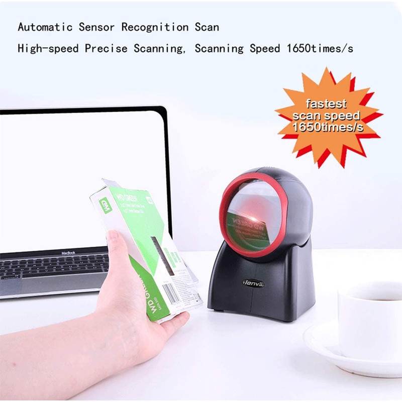 LENVII Desktop Barcode Scanner 2D Handsfree Barcode Reader QR Code Scanner Automatic Bar Code Scanners use for Warehouse, Supermarket, Retail Store, Bookstore POS System