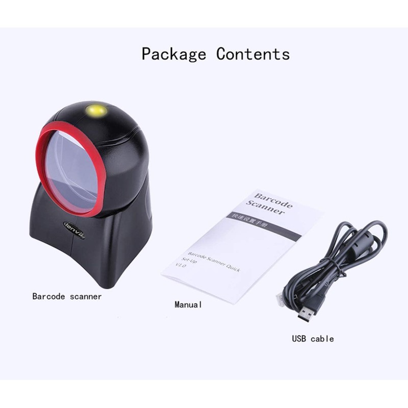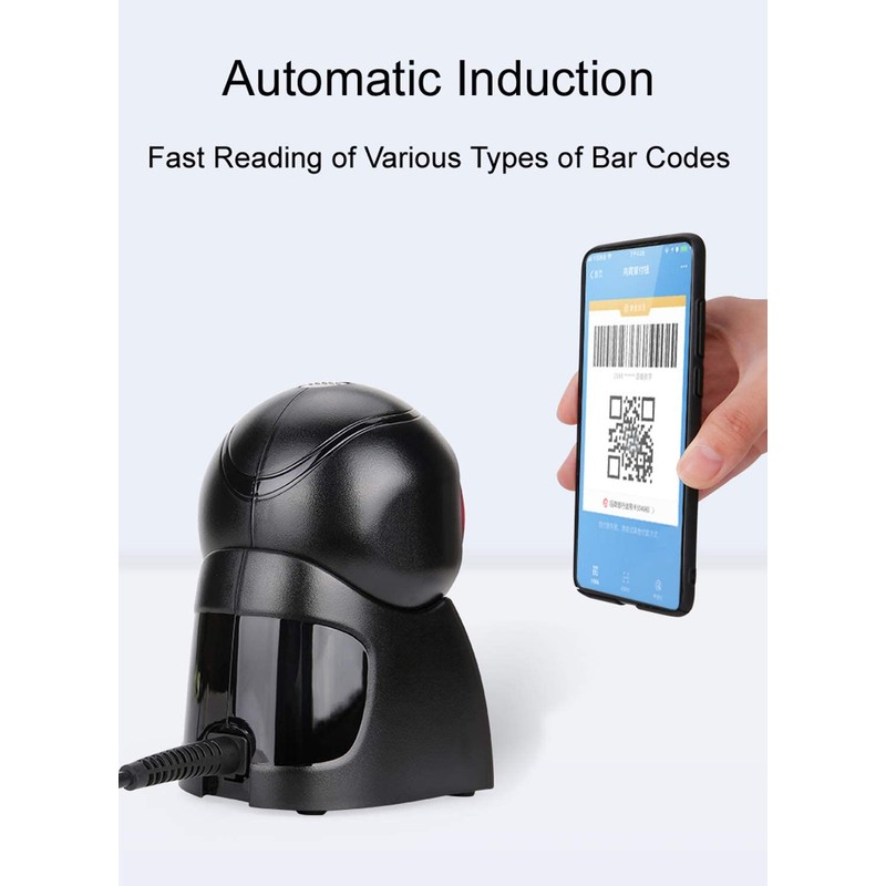 - 【Automatic Barcode Scanner】:Handsfree 2D scanner can be placed directly on your desk or table, leave your hands free, no need to hold the scanner. Improve your work efficiency,which makes scanning much more effective and comfortable.