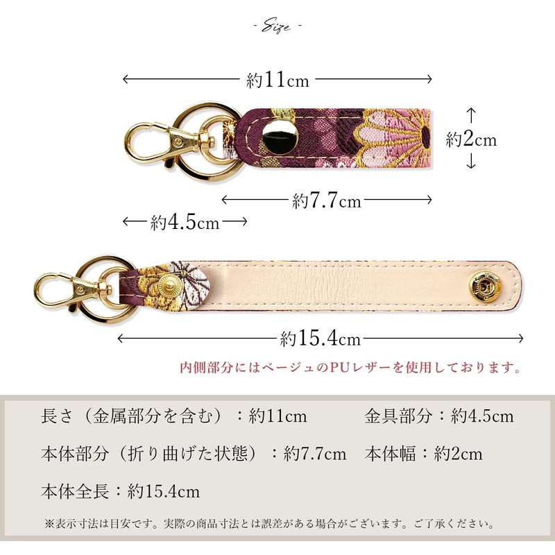 leo&aoi Key Ring, Snap Button, Belt Type, Key Chain, Nishijin Textile, Gold Brocade, Bag Charm, Japanese Style, Japanese Pattern, Key, Women's, Men's, Ming, Tachizuchi Chrysanthemum