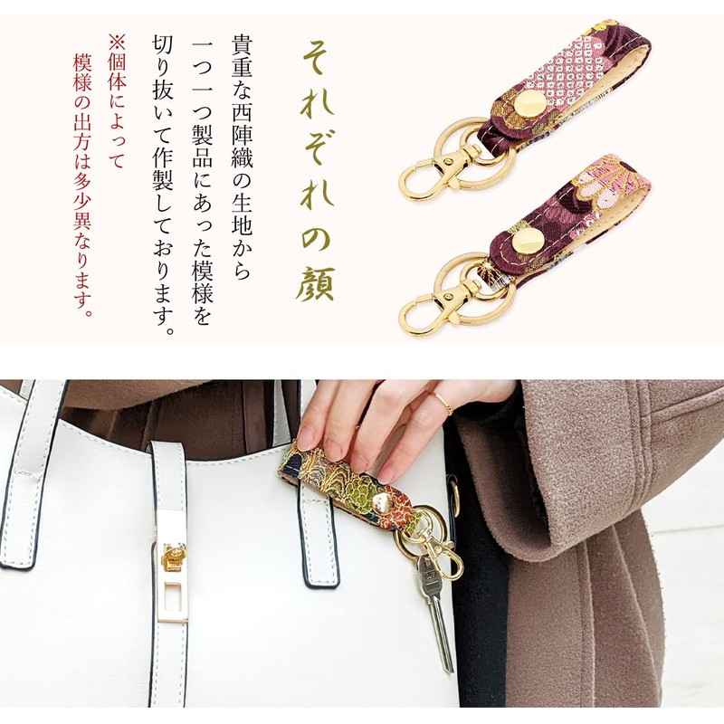 leo&aoi Key Ring, Snap Button, Belt Type, Key Chain, Nishijin Textile, Gold B...