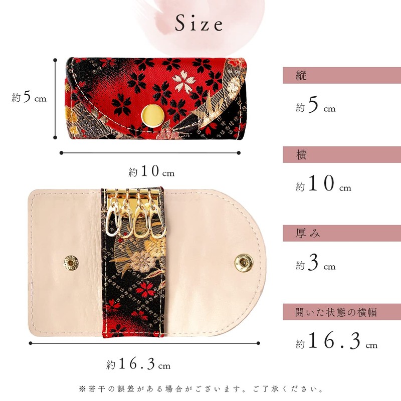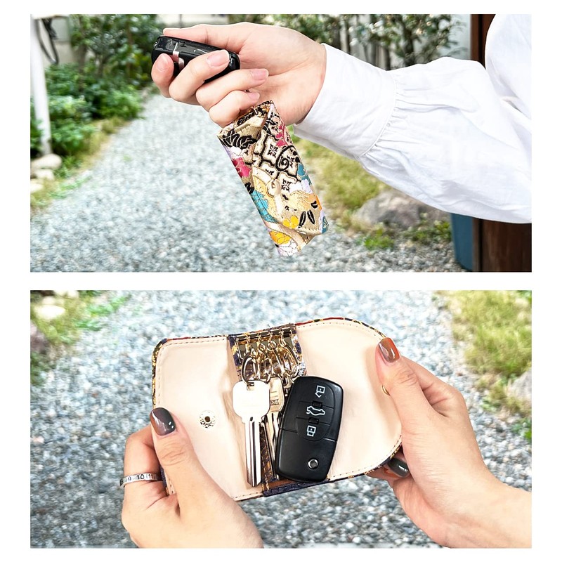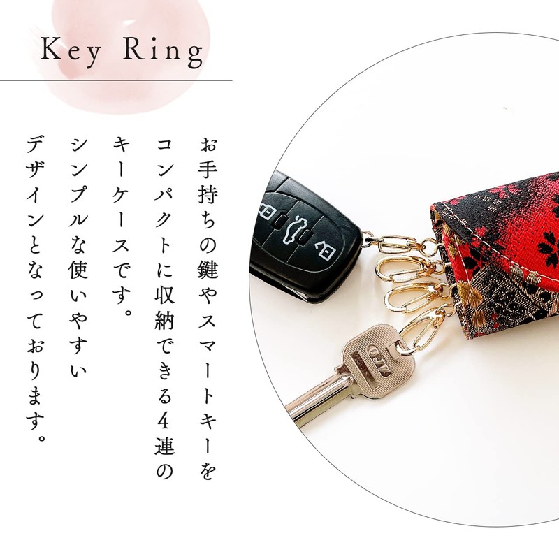 leo&aoi Nishijin Textile Key Case, Women's, Men's, 4 Strands, Smart Key, Trifold, Key Holder, Compact, 4 Key Hooks, Japanese Pattern, Gold Brocade, Bamboo, Small cherry blossom on the fan side