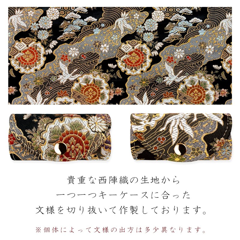 leo&aoi Nishijin Textile Women's 4 Row Smart Key Trifold Key Holder Compact Key Holder 4 Row Key Case 4 Key Hook Gold Brocade Pine, Kabunn Crane on the Head