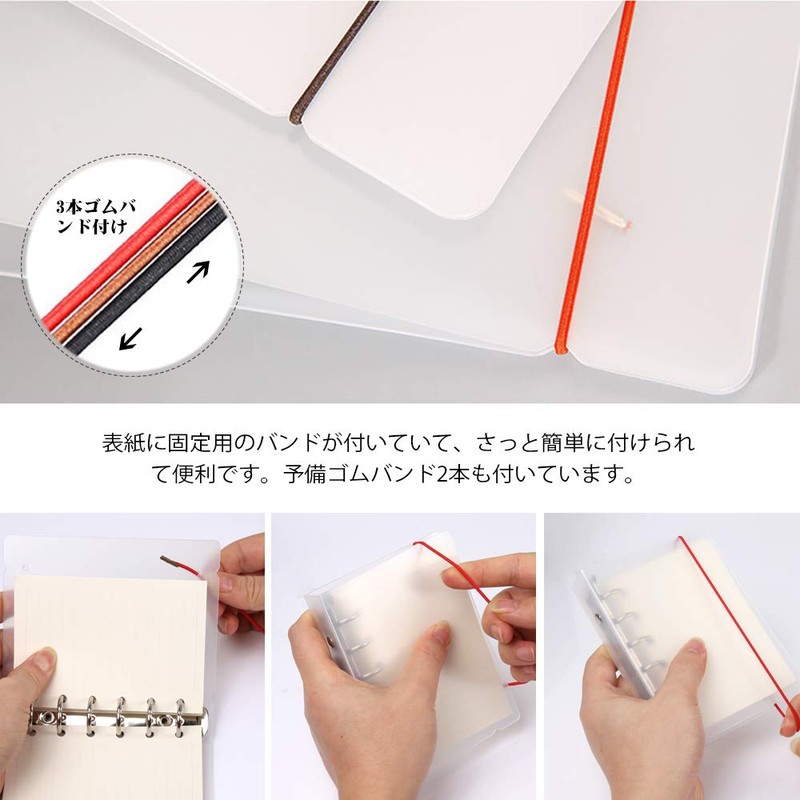 Made of PP, lighter than leather for convenient carrying. The binding is a type of metal ring that opens and closes instead of opening the top end at the fulcrum, so the paper will not fall apart from accidental opening. It is well made and has a lot of storage space. Rounded corners make paper less likely to break and more durable.