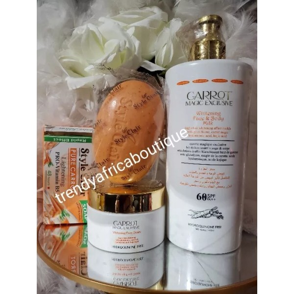 Leojeci 3pcs. Carrot Magic Exclusive whitening body LOTION, Face Cream &style Clair Soap
