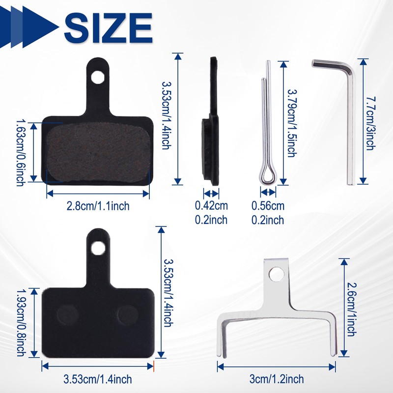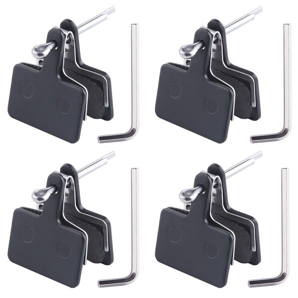 - Package Includes: 4 pairs bicycle disc brake pads(stainless steel spring sheet and stainless steel pin included), 1 pc 5mm hex key allen wrench. The spring sheet has strong resilience, enabling rapid reset and minimizing friction between the discs. The stainless steel pins are finely polished for smooth insertion