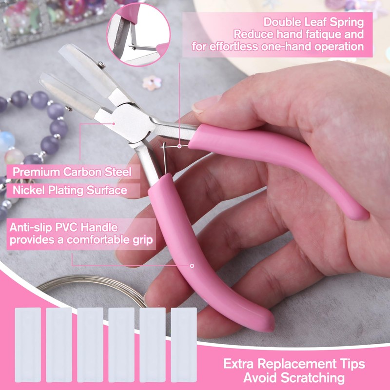 - No Scratches: Flat nose pliers with nylon covers on the jaws protect the jewelry from scratching. Extra 3 pairs of replacement tips prevent the hassle of additional purchases. Note: Replacement tips are easier to replace after being heated and softened