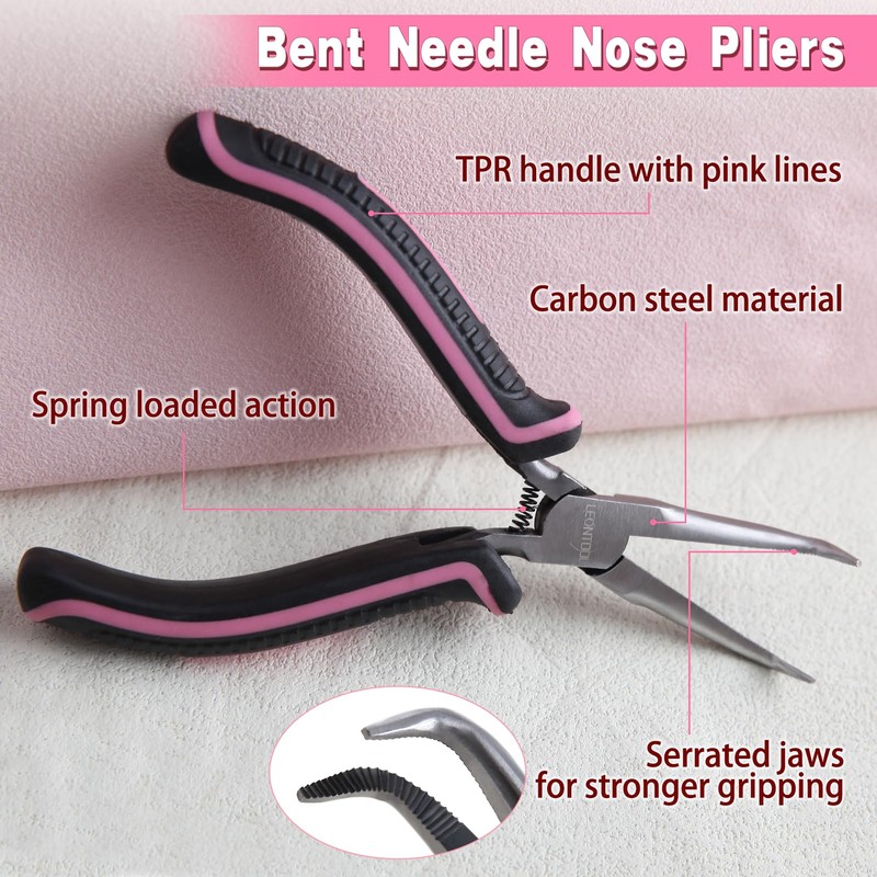 LEONTOOL 5 Inches Mini Bent Needle Nose Pliers with Serrated Jaw Small Bent Long Nose Pliers Tweezers Jewelry Pliers Jewelry Tool for Jewelry Making, Wire Wrapping and Object Gripping with Soft Grip
