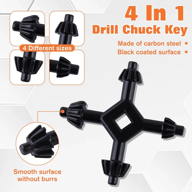 Long Handle Design: provides you with good leverage to easily tighten or loosen the chuck. Each drill chuck key wrench has 11 or 12 teeth, so the drill chuck is evenly stressed and won't slip or deform