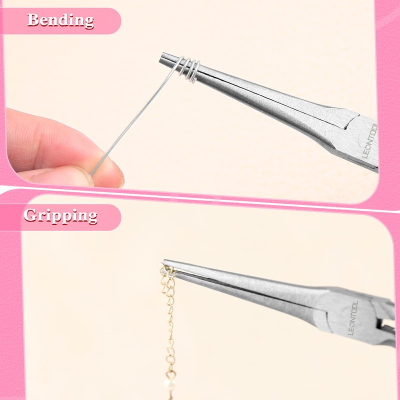 LEONTOOL Lead Pliers, Extra Fine, No Burrs, Mini Tapered Pliers, Needle Nose Pliers, Micro Radio Pliers, Fine Pliers, Grab, Bend, Spring Included, Lightweight, Small, Beads, Professional, Hobby Tools, DIY Accessories, Handmade Jewelry Making, Handmade, P