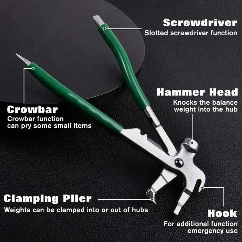 • Multi-functional Weight Plier: The wheel balancing weight pliers are a combination of hammer, pliers, pry bar, hook, screwdriver, crimping tool, meet your different needs