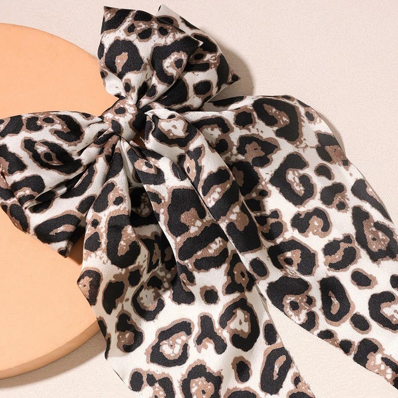 Leopard Hair Clips for Women YEFIUO Bow Hair Ties No Damage Flat Spring Claw Clips Fall Winter Fashion Streamer Barrettes Hair Accessories Decoration Gifts for Ma'am Girls (White)
