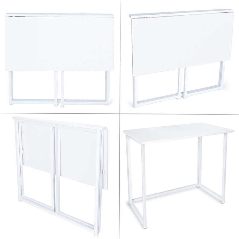 Leopard Outdoor Products Folding Computer Desk for Small Spaces, No-Assembly Space-Saving Home Office Desk, Foldable Computer Table, Laptop Table, Writing Desk, Compact Study Reading Table (White)