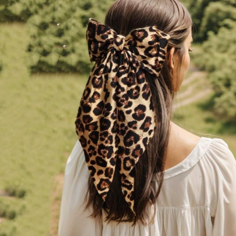 Design: Leopard print pattern with a long tail design that adds an extra flair to the bow.