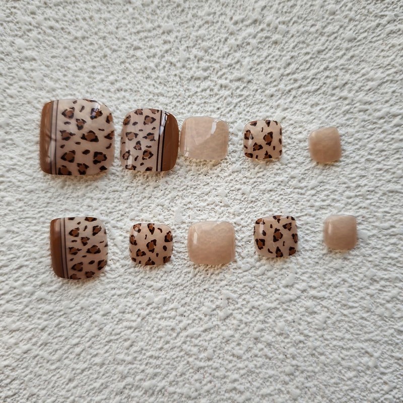- Easy to Use:Leopard print stick on toenails.After trimming and cleaning your natural press on toenails, select the right sizes of our nails and apply our nail adhesive tape on, then press on your nails for 10 seconds. Now you have beautiful new Toe nails