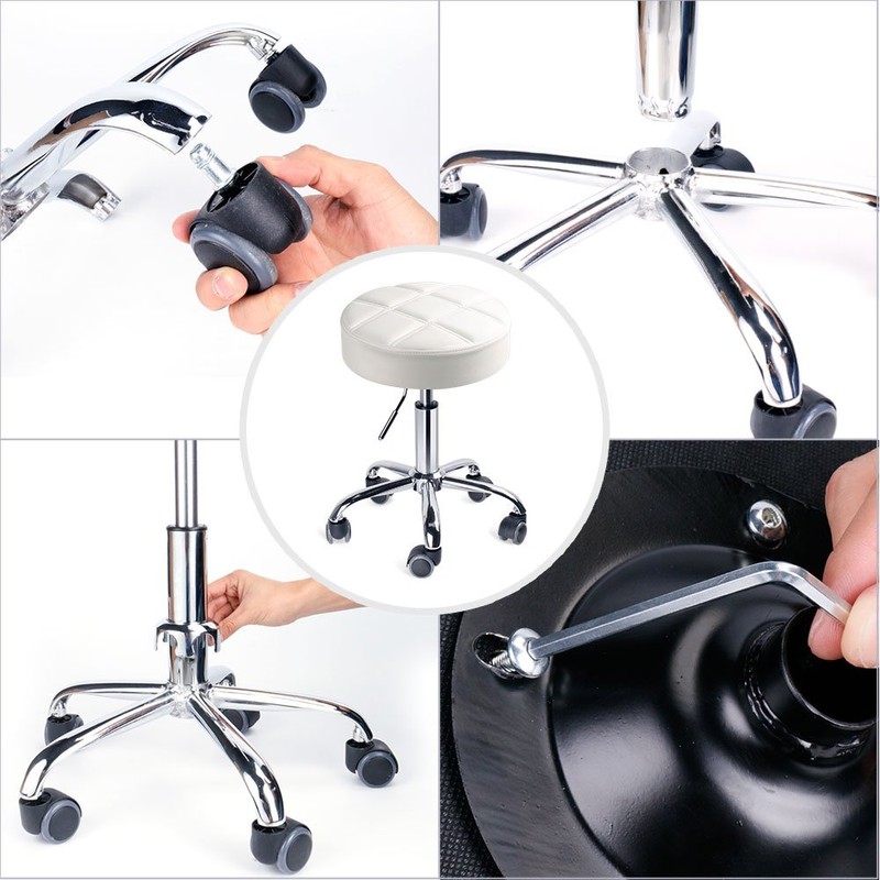 Leopard Round Rolling Stools, Adjustable Work Medical Stool with Wheels (White)