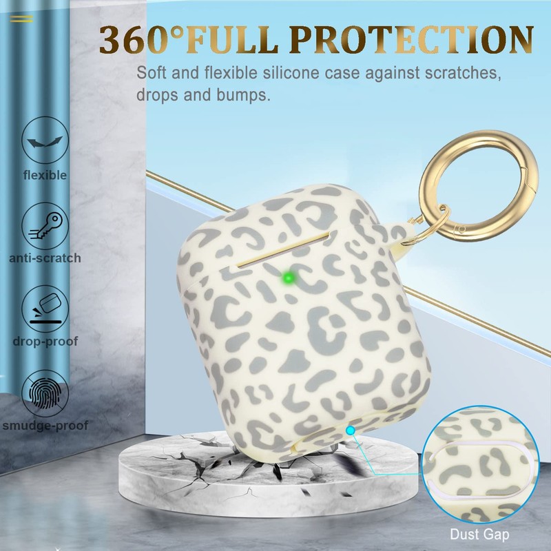 Leopard Silicone Compatible with Airpods Case, Gawnock Soft Earpod Case Flexible Compatible with Airpods 2nd/1st Generation Print Cover for Women Girls with Keychain - Beige Leopard Cheetah
