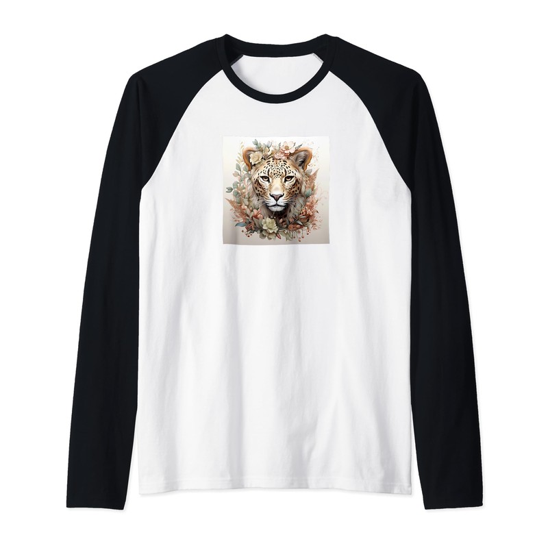 Leopard With Succulents Around Boho Style Graphic Raglan Baseball Tee