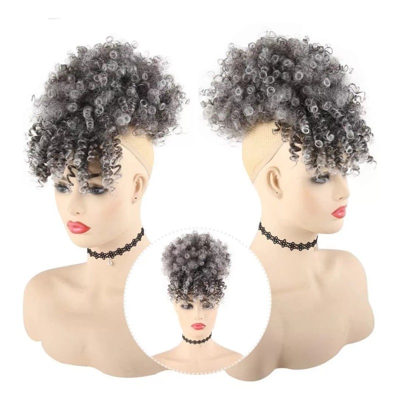 Leosa Afro Puff Cordón Ponytail Bun Con Flequillos Resistent