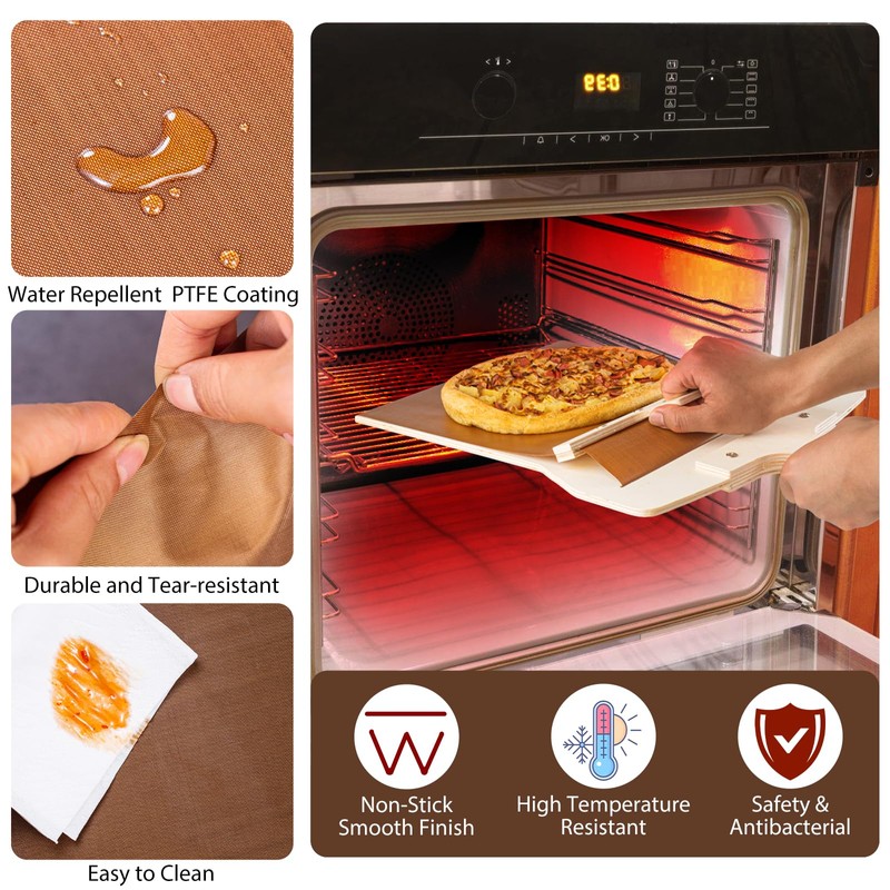 • ? Extra Non-stick Cloth Crafted from food-grade wooden materials, our sliding pizza shovel guarantees safety and hygiene. Featuring a high-temperature-resistant PTFE baking non-stick cloth, it prevents deformation and simplifies cleaning. In addition, we provide additional non-stick cloth for you to replace, extending your pizza peel slider lifespan.