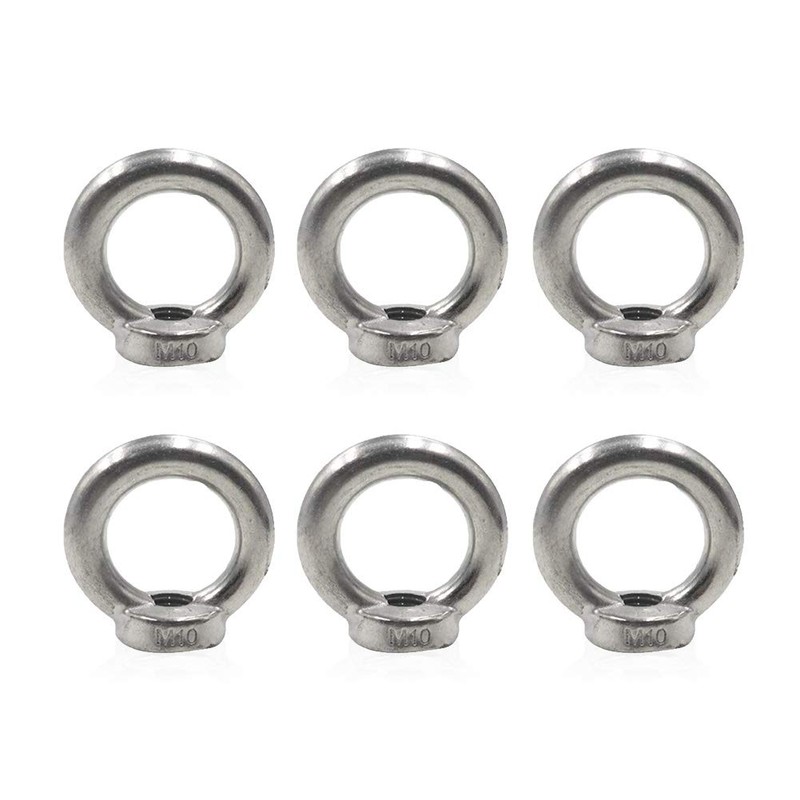 Lependor M10 Metric Ring Shape Lifting Eye Nut 304 Stainless Steel Lifting Eye Threaded Nut Fastener - 6 Pcs M10 (3/8")