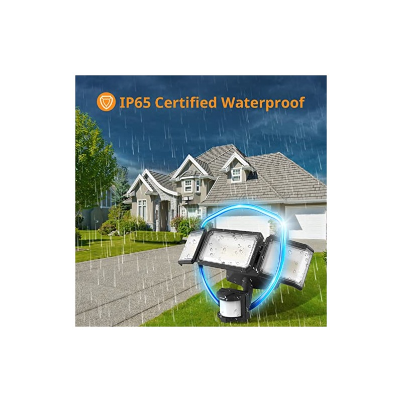 - 72ft Sensitive Motion Sensor: At a 180°sensing angle, the motion sensor of battery flood lights is sensitive enough to pick up motion 72 feet away (0-72ft range of motion sensing). 3 adjustable light panels provide better light coverage than single or dual head lights and can be moved to light specific areas.