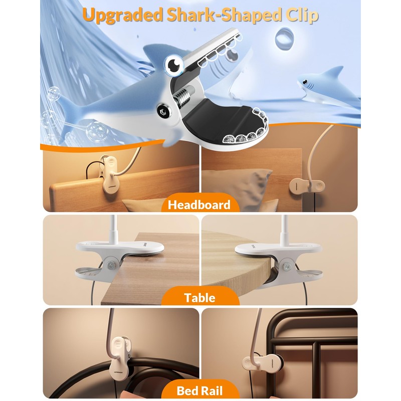 - Shark-Shaped IcePop Light: Lepower ice pop-shaped reading light brightens up while tightly gripping with the innovative clip. 2 inch open width and optimized mechanics, it bites on anything and won't let go when you're reading