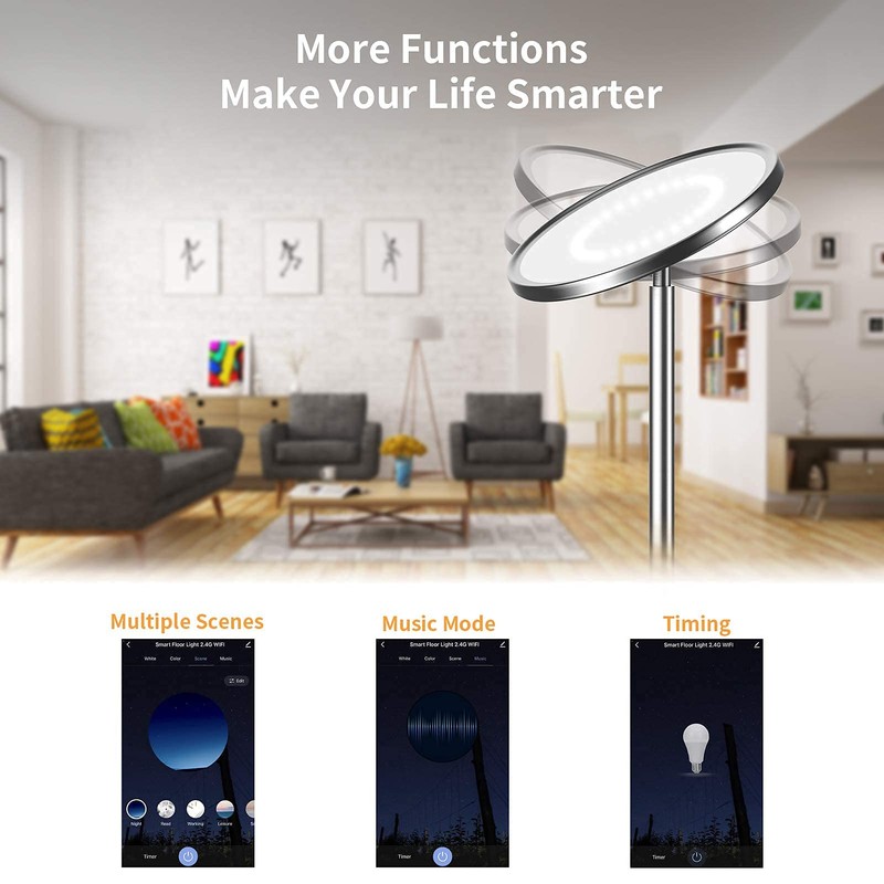 - Easy to Set up + Timing Function: Set-up is superior easy and only takes a few minutes with the help of a detailed user guide. You can set the modern floor lamp to turn on or off automatically at a specific time. Come and enjoy your smart life! (Bluetooth connection is not supported)