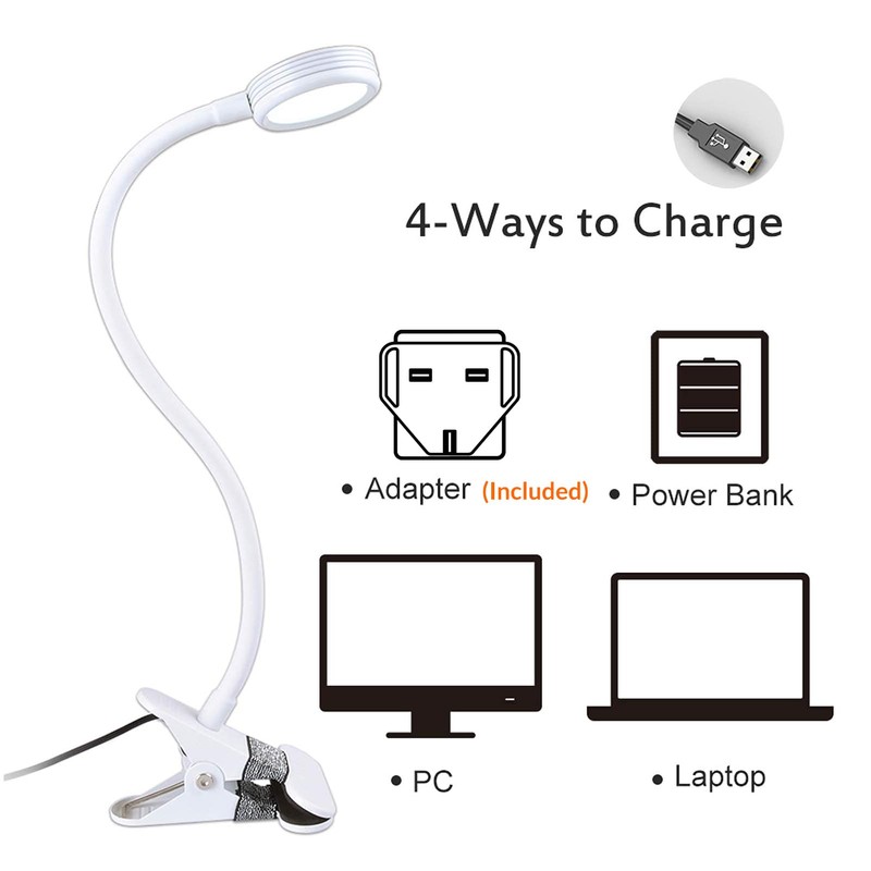 LEPOWER LEPOWER Clip on Light/Reading Light/Book Light Color Changeable/Night Light Clip on for Desk, Bed Headboard and Computers, Include UK 3-pin Plug Adapter (White)
