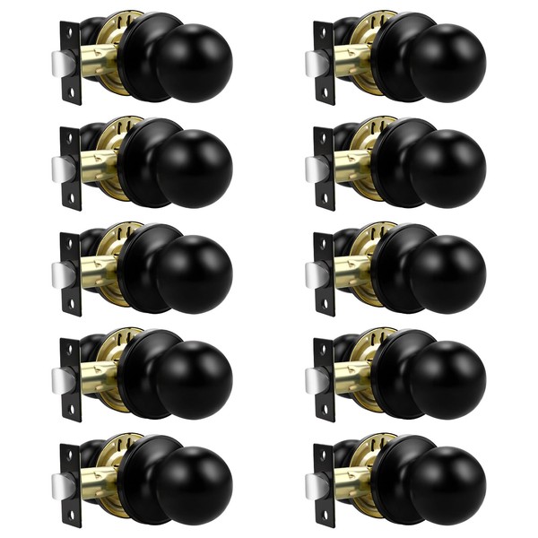 Lepushom 10 Pack Door Knobs Interior, Black Door Knobs Without Key, Closet Door Handle with Durable Finish, Passage Function, Round Ball Design for Hallway and Laundry Room