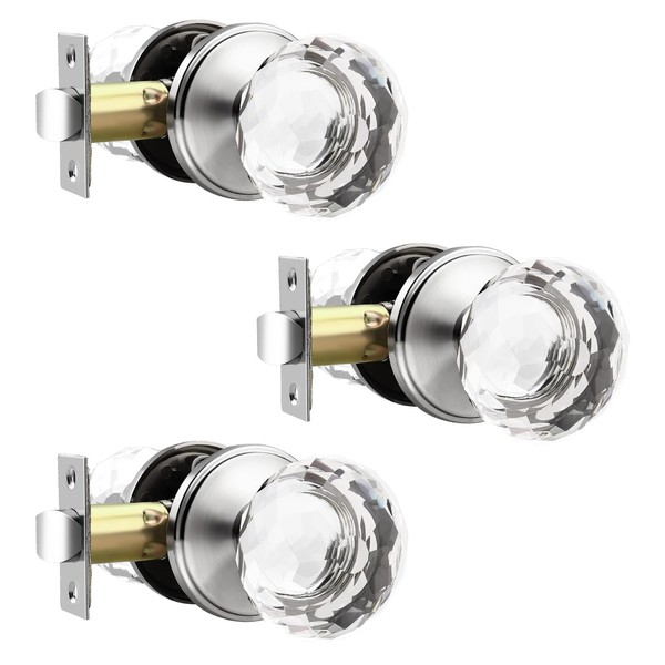 Lepushom 3 Pack Crystal Door Knobs Interior, Elegant Satin Nickel Closet Door Knob, Keyless Glass Door Knobs for Hallways and Laundry Rooms