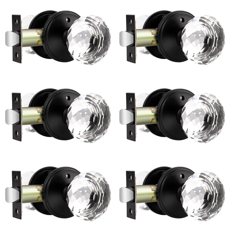 Lepushom 6 Pack Crystal Door Knobs Interior, Elegant Matte Black Glass Door Knobs, Keyless Privacy Door Locks for Bedrooms and Bathrooms