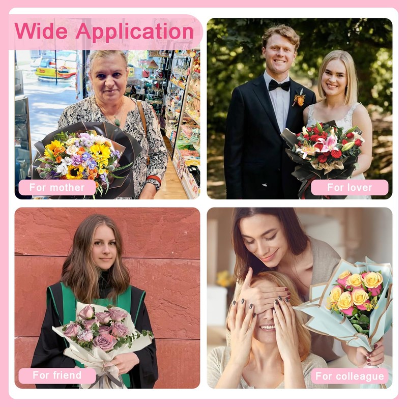 - Versatile Usage: Our flower wrapping paper set offers hemp rope, bouquet pins and flower decoration paper. The bouquet packaging kit in our collection is an indispensable companion for a diverse array of occasions, including engagements, weddings, Valentine's Day, Christmas, flower shop needs, Mother's Day, Father's Day, graduation parties, and numerous other memorable events.