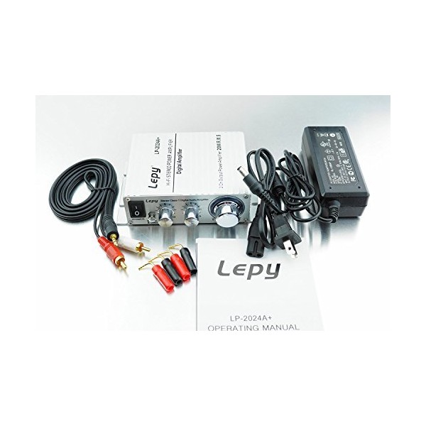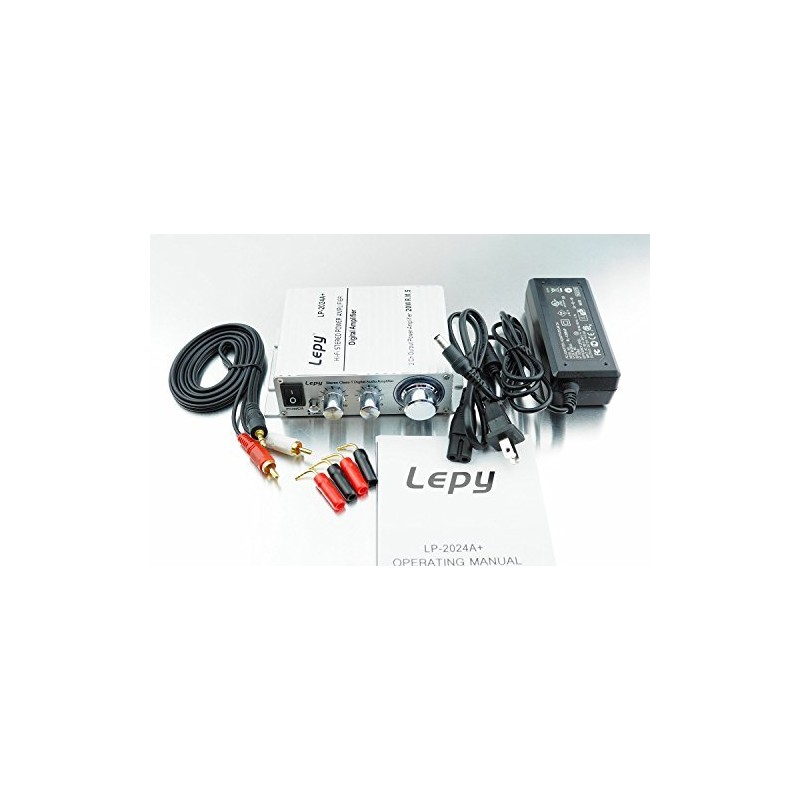 Lepy LP-2024A+ (Silver) Digital Amplifier (Main Unit + RCA Audio Cord + AC Adapter 12V 5A + Banana Plug) LP-2020A Version Upgraded Version