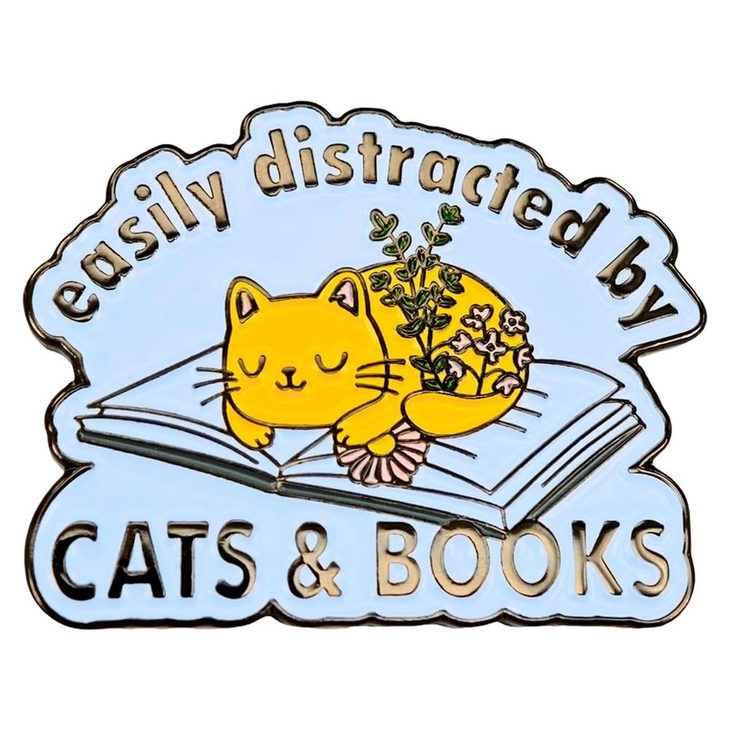 Leraverppy Enamel Pin,Easily Distracted By Cats & Books Lapel Pin,Cute Kitten Pet Badge,Conversation Starter Brooch,Gift For Booklovers Reader Student Teens,DIY Decor,Pin on Canvas Bag Backpack Jacket