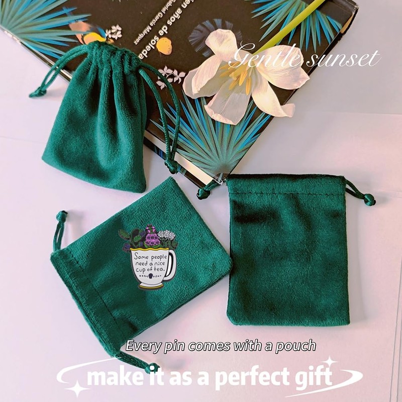 - 《Best Gift》Our special enamel pins are each paired with an elegant green pouch, making them an ideal gift for teens, elders, supervisors, family, and friends. They can be used as clothing decorations, student badges, girls' brooches, or men's and women's jewelry, and are also a great self - reward.These charming enamel pins are perfect for various party gatherings with family, loved ones, friends, coworkers, classmates, and students. They are suitable for birthdays, wedding anniversaries, or any commemorative events as souvenirs. Whether it's adults, teenagers, or kids, everyone loves brooch - style decoration accessories!