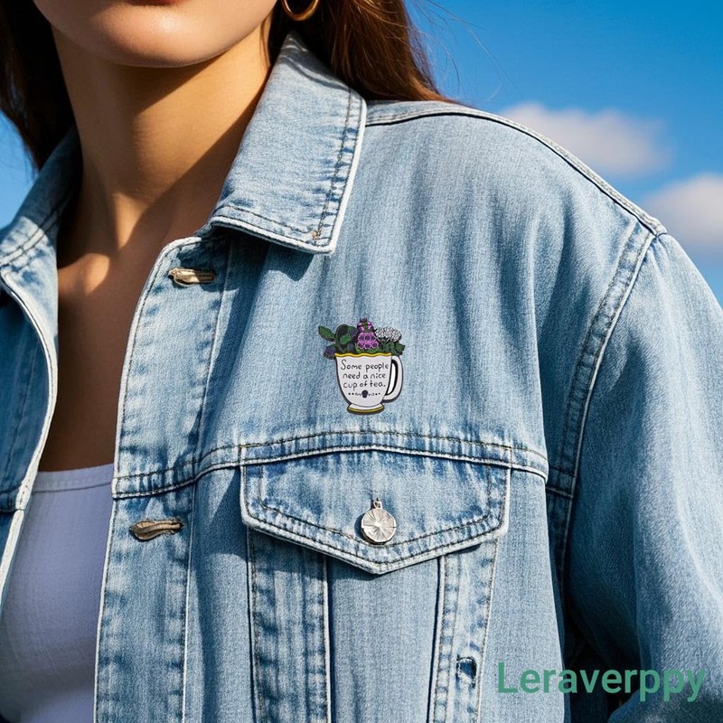 - 《DIY Decorate》Unleash your unique creativity with this tea cup filling with purple white and green plants brooch.Perfect for pinning on lapel,dresses,sleeves,scarves,sweater,shirt backpack,jeans,hat,wallet,cap,demi jackets,suits,canvas bags,lanyard,pin collection or anything you want,it adds a touch of elegance and sophistication to any outfit. Its versatile design ensures it is suitable for both formal occasions and everyday wear.Perfectly Sized: Approx 1.39 x 1.58 inch.