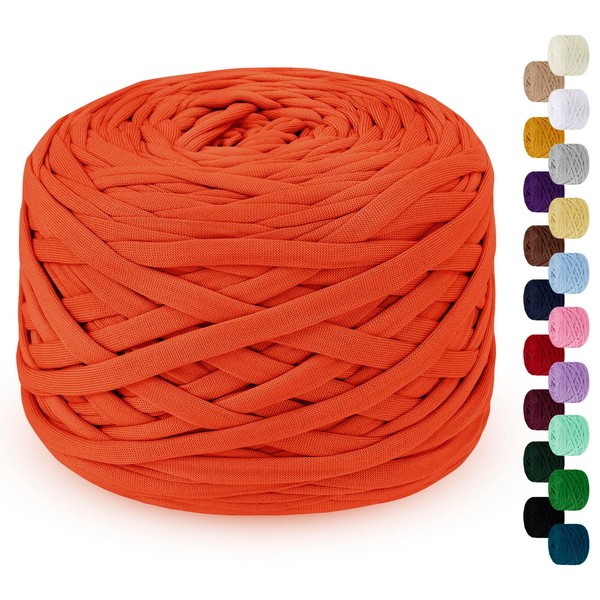 LEREATI 285g T Shirt Yarn for Crocheting 100m Elastic Ribbon Yarn Thick Crochet Fabric Yarn, Knitting T-Shirt Yarn for Crochet Bag, Blanket, Basket, DIY Projects, Home Decor (Orange)