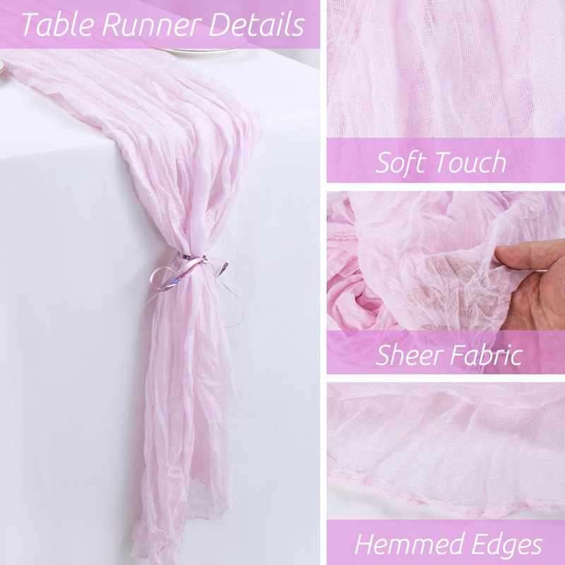 - 🎁 Soft and and Reusable Material: Gauze table runner is made of polyester, soft and sturdy. This chiffon fabric material was so easy to work with, did not snag or fray since, laid flat since that is how you needed but could easily be bunched or twisted if that's what you needed it to do. Will be able to reuse and restyle to any theme your wishes.